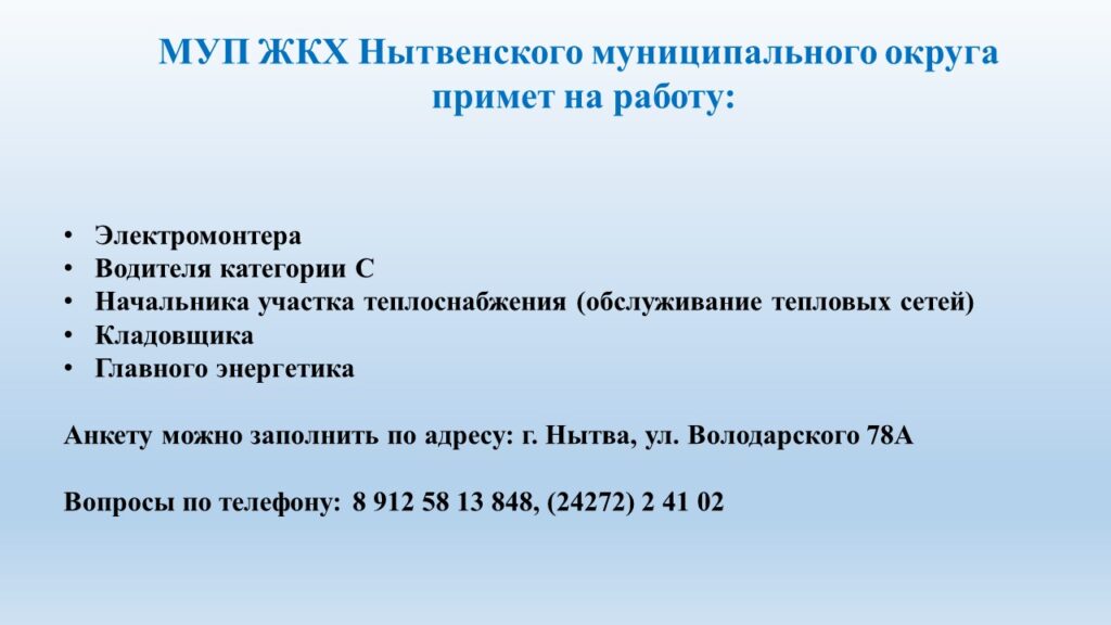 Вакансии | Муниципальное унитарное предприятие "ЖКХ" Нытвенского района
